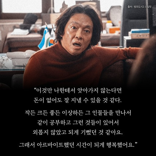 《범죄도시2》는 개봉 3주 만에 1,000만 관객을 돌파하며 천만 배우로 도약할 계기를 마련했다. 거친 외형 속에서도 유머와 인간미를 담은 연기로 캐릭터의 생명력을 부여했다는 평가를 받았다. 향후 제작될 《범죄도시5》에서도 출연 가능성이 높아 팬들의 기대를 모으고 있다.