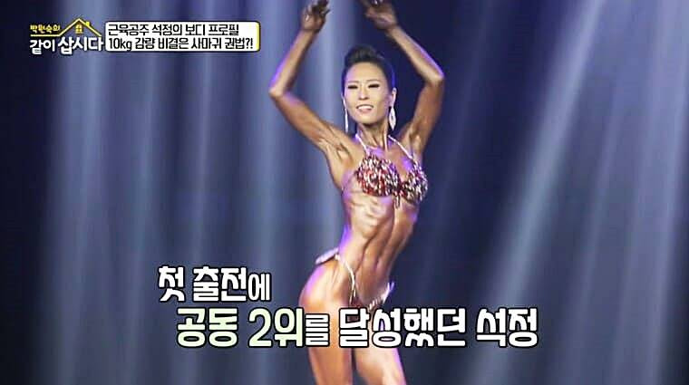 황석정은 배우 경력 외에도 피트니스 대회 도전으로 주목을 받았다. 50세에 머슬퀸 대회에 출전해 6개월간 체지방률 4.1%를 달성하며 놀라운 변화를 이뤘다. 트레이너 양치승의 지도 아래 진행된 고강도 훈련을 통해 근육과 체력을 단련했고, 이후에도 꾸준한 운동 습관을 유지하고 있다.
