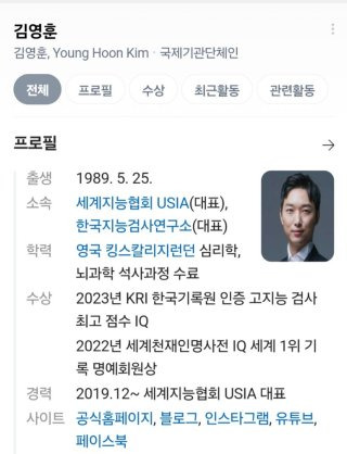세계 최고 IQ 보유자 김영훈 프로필