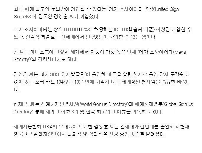 - 김영훈 세계 최고 IQ 276