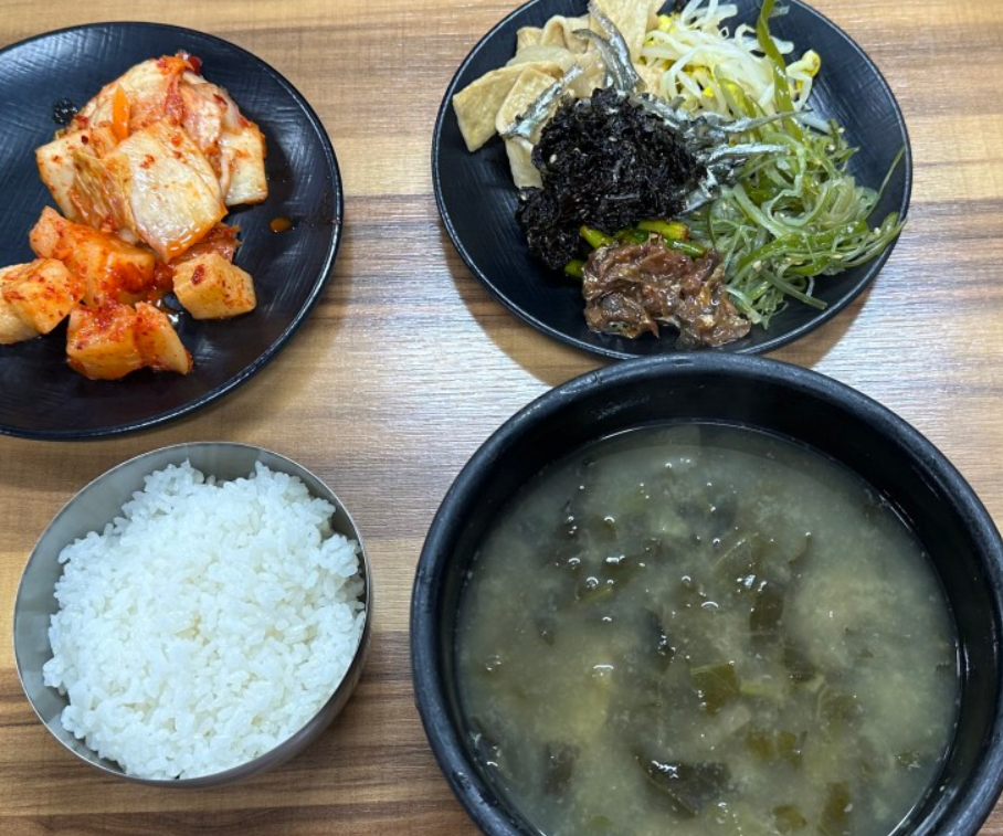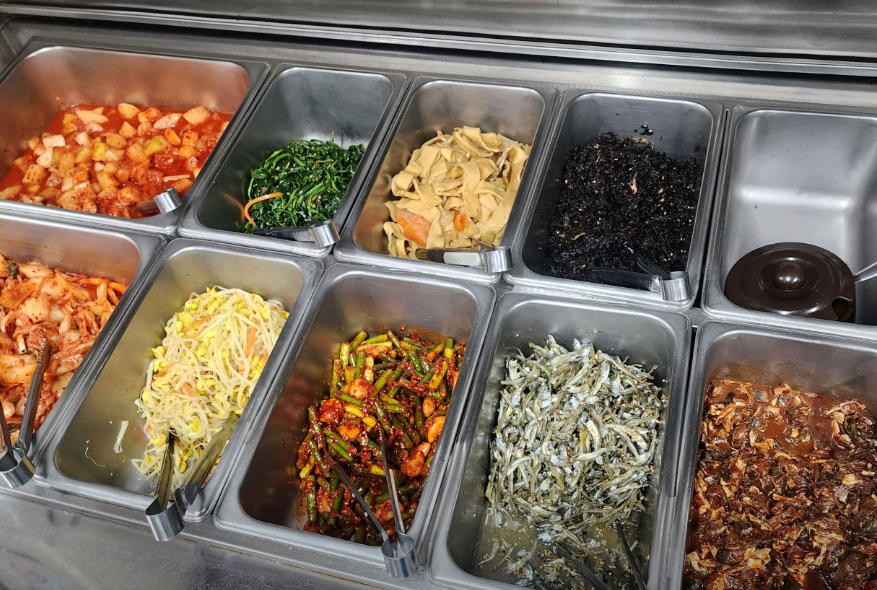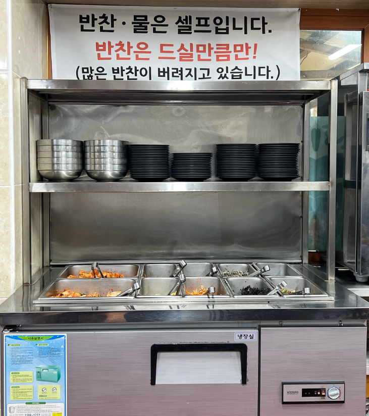 그런데 놀라움은 여기서 끝이 아닙니다! 깍두기, 파래무침, 멸치젓갈 등 매일 바뀌는 9가지 반찬이 준비된 셀프 코너가 있는데, 이 모든 게 무한리필이라니! 사장님, 남는 게 있으신가요? 😭 저는 젓갈 덕후라 멸치젓갈을 밥에 쓱쓱 비벼 먹었는데, 와... 이거 하나만 있어도 밥 한 그릇 순삭입니다.