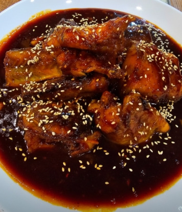 가장 많이 찾는 메뉴는 당연히 간장코다리(2인 24,000원)! 코다리를 큼직하게 써서 살이 아주 푸짐하고, ‘간장 양념’이라고 적혀 있지만 실제 맛은 매콤 + 달콤 + 감칠맛이 동시에 살아 있는 중독적인 스타일이에요.
