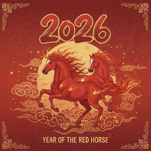 - 태양의 정기를 머금은 붉은 말의 기운이 가정과 일터에 가득하기를 바라며, 건강과 번영, 마음의 평화가 조화롭게 어우러지는 복된 한 해 되시길 진심으로 기원합니다.