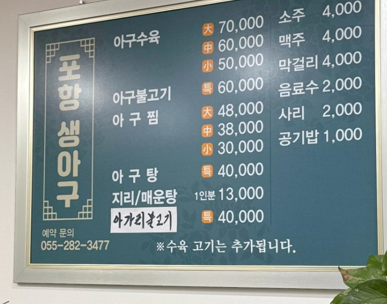 - 아구수육 : 50,000원