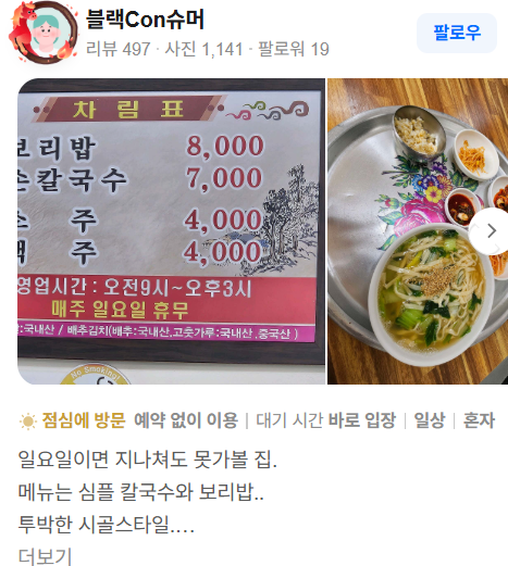 특별한 재료나 화려한 연출은 없었지만, 오히려 그 점이 더 좋았어요. 문경 여행 중 속 편한 한 끼, 제대로 된 로컬 밥상을 찾는다면 향춘손칼국수는 충분히 다시 찾고 싶은 곳이었습니다.