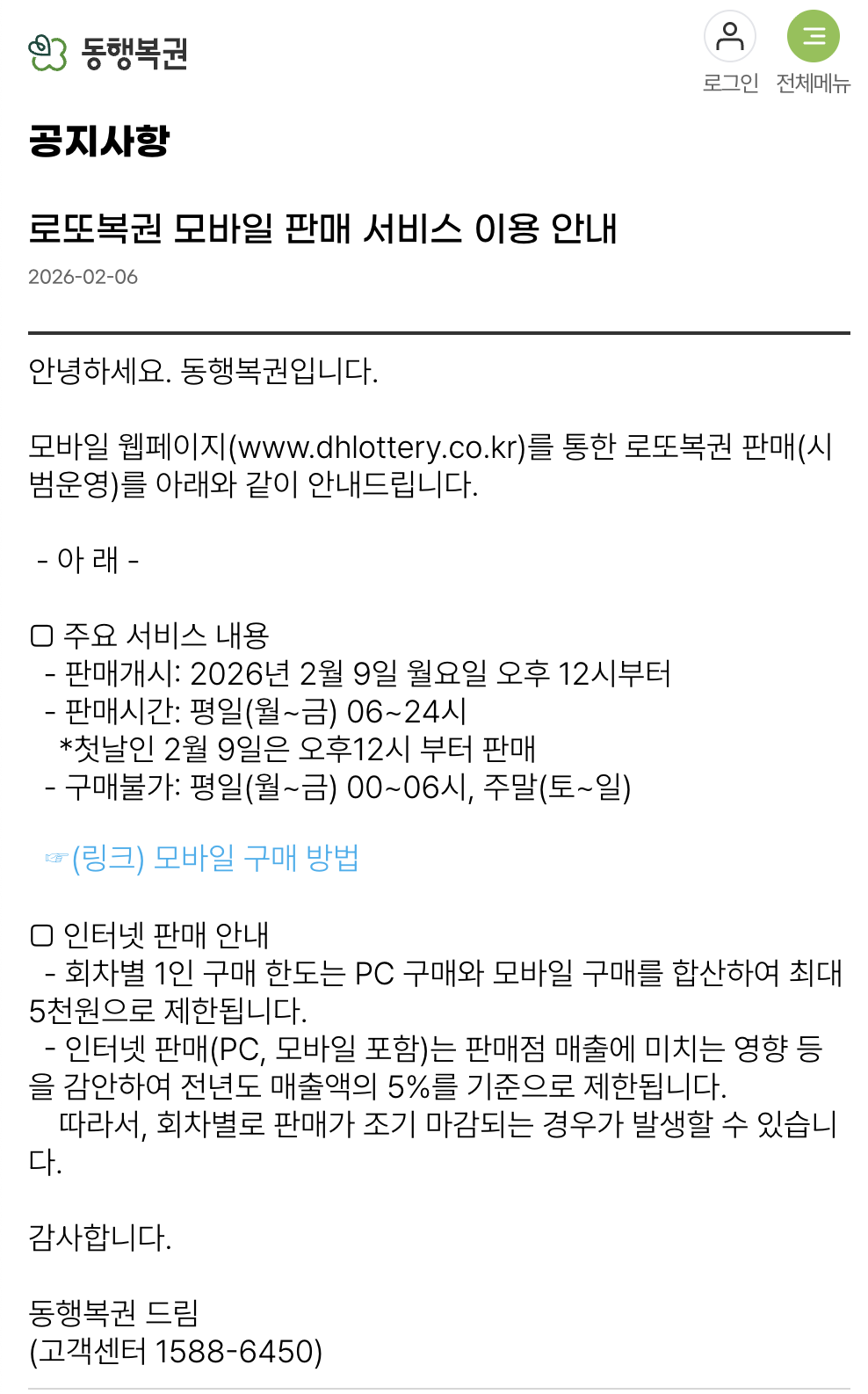 - 로또복권 모바일 구매 방법