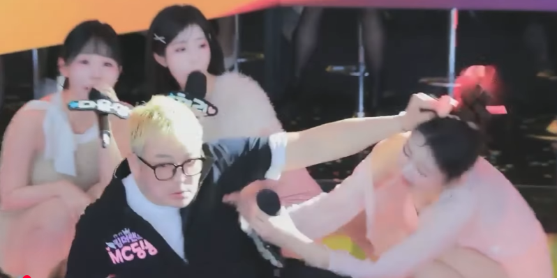방송 도중 한 여성 출연자가 MC 딩동의 과거 사건을 언급하며 농담 섞인 발언을 하자 MC 딩동의 표정이 굳었고, 이어 해당 여성의 머리채를 잡는 장면이 그대로 카메라에 포착됐다. 당시 현장에서는 다른 출연자들이 “카메라 돌려”라고 외치며 상황을 수습하려는 모습도 함께 담겼다.