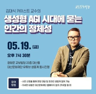 김대식 교수는 인공지능 시대에 대한 통찰을 꾸준히 제시해 온 학자로도 잘 알려졌다. 특히 인간의 지능을 넘어서는 범용 인공지능, 즉 AGI의 등장 가능성을 강조하며 인류 사회의 변화에 대해 여러 강연과 저서를 통해 설명하고 있다. 김대식 교수는 인공지능이 단순한 도구를 넘어 인간의 능력을 대체할 수 있는 단계로 발전할 가능성을 언급하며, 인간과 AI의 관계를 새로운 시각에서 바라봐야 한다고 주장했다.