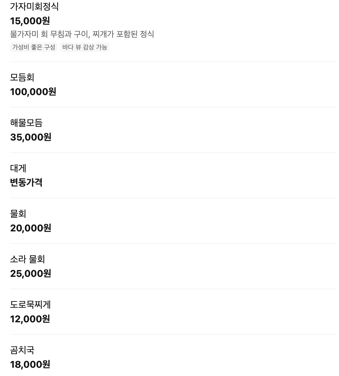 - 가자미회정식 15,000원