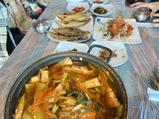 가자미구이는 겉은 바삭하고 속은 촉촉하게 잘 익어 기본에 충실한 맛을 보여줍니다. 이어서 나오는 매운탕은 자극적이지 않으면서도 시원한 국물 맛이 특징입니다. 전체적으로 조미료 맛에 의존하기보다 재료 본연의 맛을 살린 구성이며, 식사 후에도 부담 없이 깔끔한 여운이 남습니다.