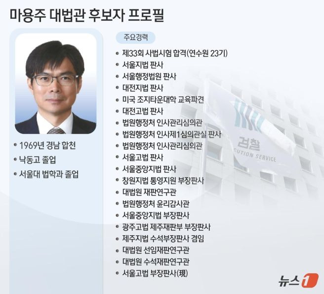 마용주 판사는 대법관 후보로 지명되기 전, 대법원 수석재판연구관을 역임하며 대법원의 주요 업무를 담당한 경력이 있습니다.