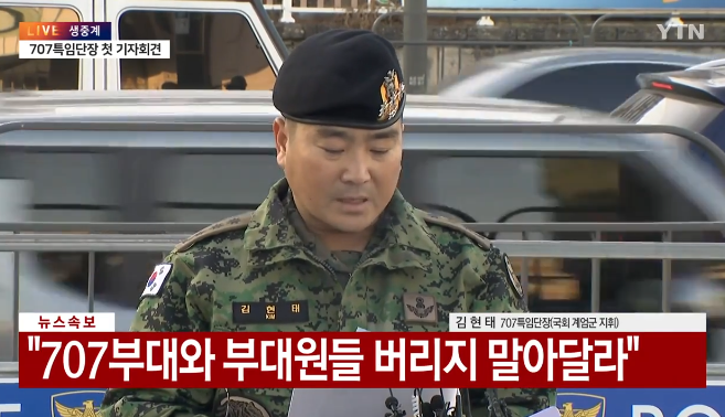 김현태 대령은 기자회견에서 자신의 부대원들이 비상계엄 선포와 국회 진입 작전에 참여한 것에 대해 "이용당한 피해자"라고 언급하며, 부하들을 보호하려는 태도를 보였습니다. 그는 부대원들이 정치적인 목적을 수행한 것이 아니라, 자신의 지시에 따른 것이라고 강조했습니다.